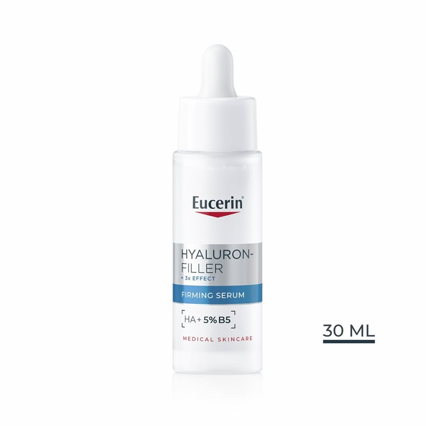 Novecojoša āda zaudē tvirtumu, mitrumu un elastību, padarot smalkās līnijas un grumbiņas redzamākas. Augstas veiktspējas nostiprinošam serumam vajadzētu uzlabot ādas tvirtumu, atbalstīt atjaunošanos un stiprināt ādas barjeru. Eucerin Anti-Age Hyaluron-Filler +3x Effect nostiprinošais serums apvieno 5% Provitamūnu B5 un mikro hialuronskābi, nodrošinot ilgstošu mitrināšanu, redzami piepildot grumbiņas un stiprinot ādas dabiskos aizsardzības mehānismus.